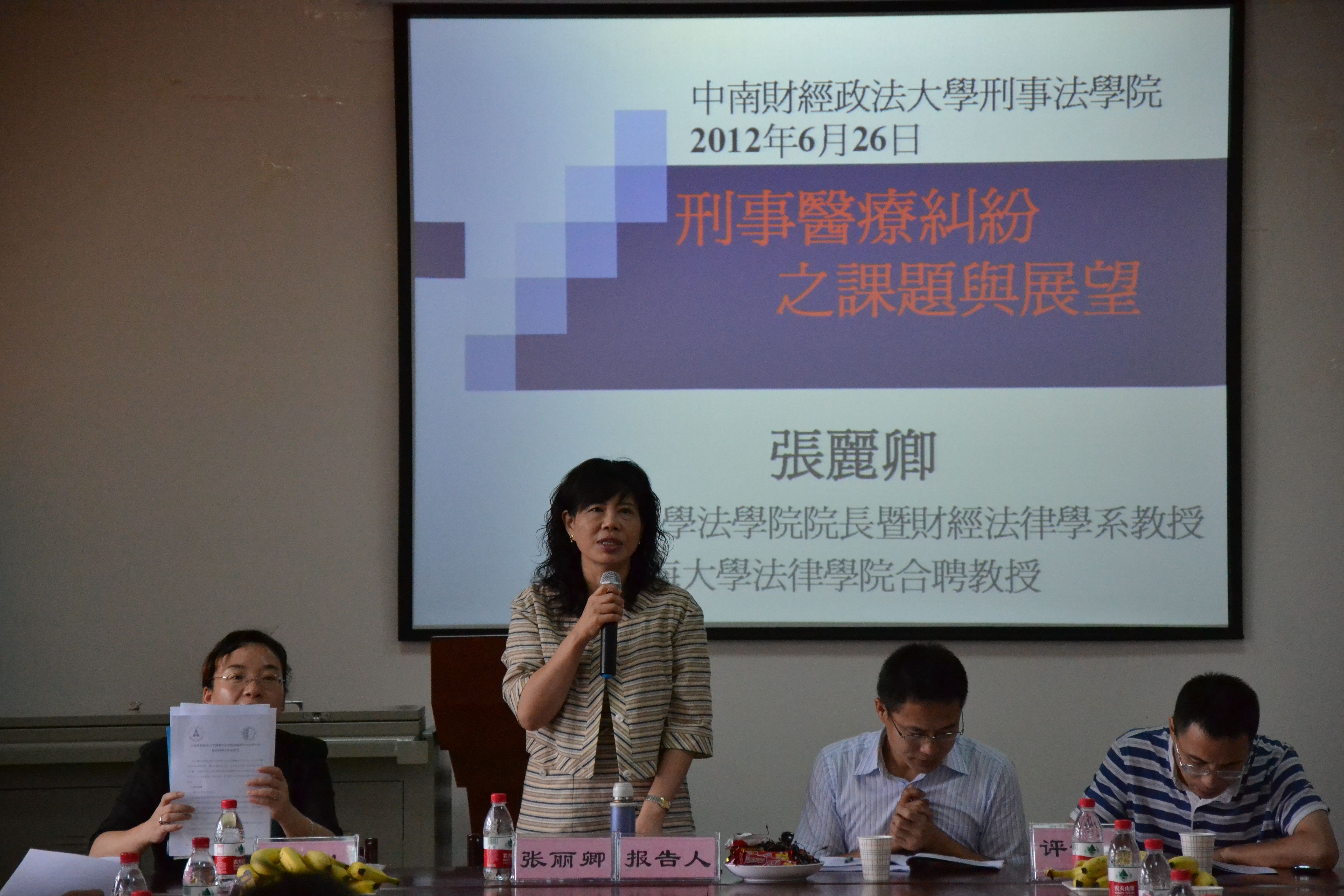副院长苏彩霞教授主持,苏院长首先代表出差在外的夏勇院长对张丽卿教授一行的到来表示热烈的欢迎,并介绍了张丽卿教授的学术与职业经历。