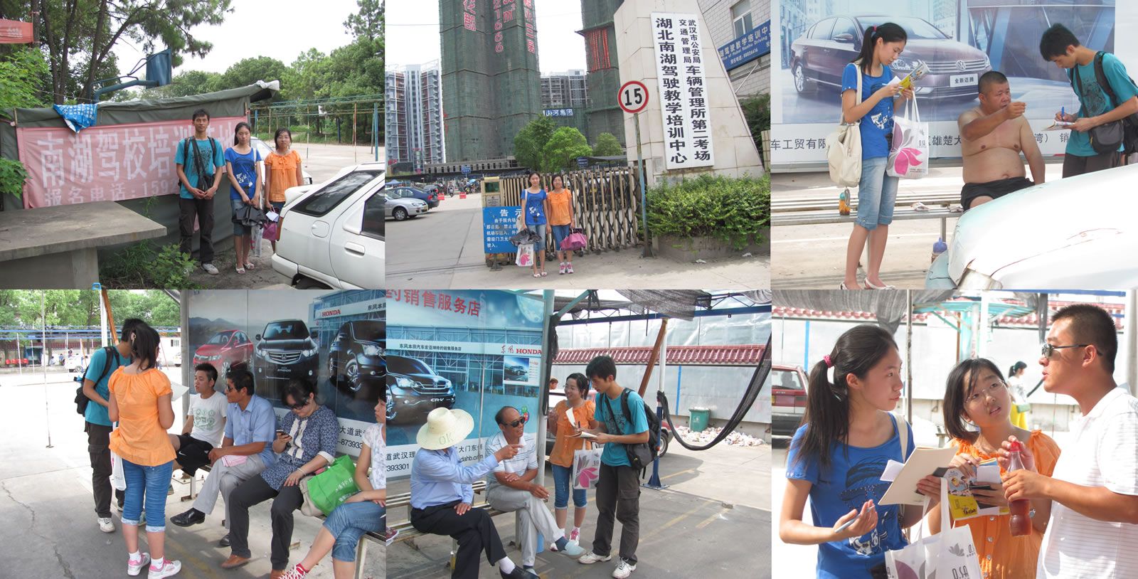陈镜荣调研实践百折不挠小分队一行首先在原弘博软件园篮球场旁边的南湖驾校十大队训练场,对张利华、张聪两位教练进行了深度访谈,紧接着又于10:30抵达南湖驾校总部,分别同曾教练、李教练、王教练、陈教练四位教练开展了较为简短扼要的访谈,目的在于分析驾驶教练在基于多年的教学经验和驾龄后,对闯黄灯的态度及原因。在与教练的交谈中,我们了解到6位教练中共有5位支持黄灯不可闯,闯黄灯该罚的观点,其中的王教练非常关注武汉市交管局出台的新规定,闯黄灯罚100元,扣3分,也熟悉全国首例闯黄灯的行政案件;但相反,驾校总部的另1位教练认为黄灯就是起缓冲作用,缓冲作用就是可通行,甚至持黄灯的存在意义不大,可取消黄灯的看法。