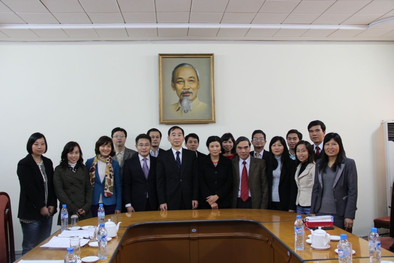 1月23日,访问团成员与越南河内大学进行了合作洽谈。洽谈会由河大校长潘志孝博士主持,河大教务处长、科研处长、国交处长列席洽谈会。潘志孝博士对合作表示了很大兴趣,并就扩大合作内容提出了请求,如要求我校为该校教师到我校攻读博士学位提供便利等。夏勇院长介绍了我国留学政策和我校留学政策。双方商定2013年6月在我校进行第二次合作交流。