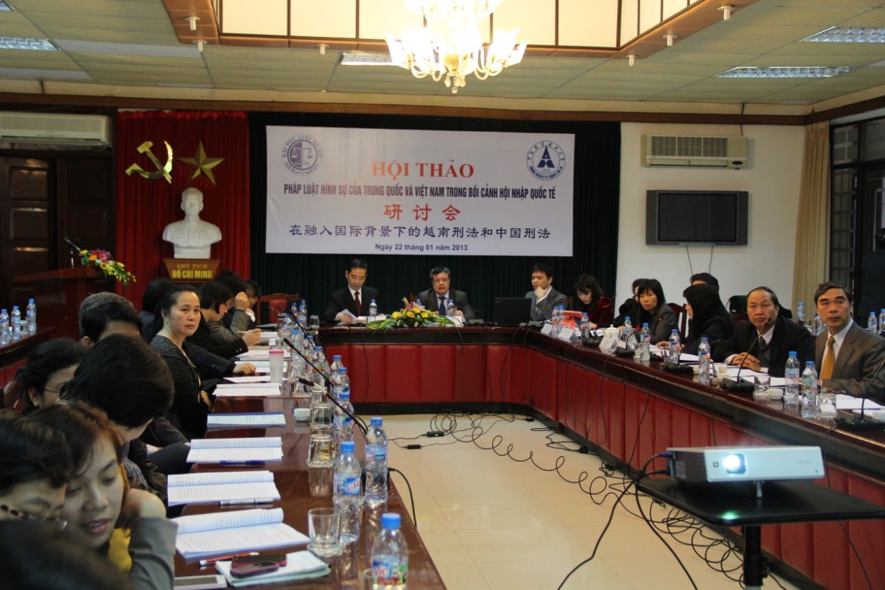 2013年1月22日,河大校长潘志孝博士、副校长阮玉和教授和国际交流处处长阮文光在学校小型会议室接见了代表团成员。之后,在该校学术报告厅举行了“融入国际背景下的越南刑法和中国刑法”的研讨会。参加会议的除了该校的刑法教师,还有国会办公室工作人员、越南司法部刑事法规局副局长、法律与民主杂志社主编以及司法部其他工作人员、法院司法实务人员。