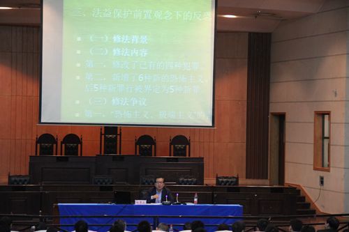 1014日上午,北京师范大学刑事法律科学研究院院长、中国法学会常务理事暨学术委员会委员、中国刑法学研究会会长赵秉志教授应邀来我校讲授“《刑法修正案(九)》修法重要争议问题”。nba在线看 组织韶关市检察机关的108名检察官参加讲座。现场座无虚席、互动频繁、气氛热烈。在场的检察官们非常感谢nba在线看 给他们提供的此次机会,表示能够听取中国刑法学界大家的讲座实属难得,且受益匪浅。