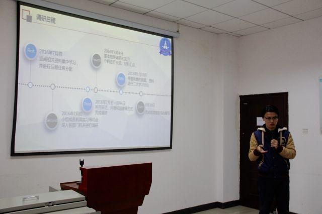 于文治楼二楼会议室开展暑期社会实践答辩活动,此社会实践目的在于培养学生理论与实践相结合能力,让学生在实践的过程中更好的领悟创新的含义。院长胡向阳教授、副院长董邦俊教授、董少平老师、舒玲华老师担任答辩评委。