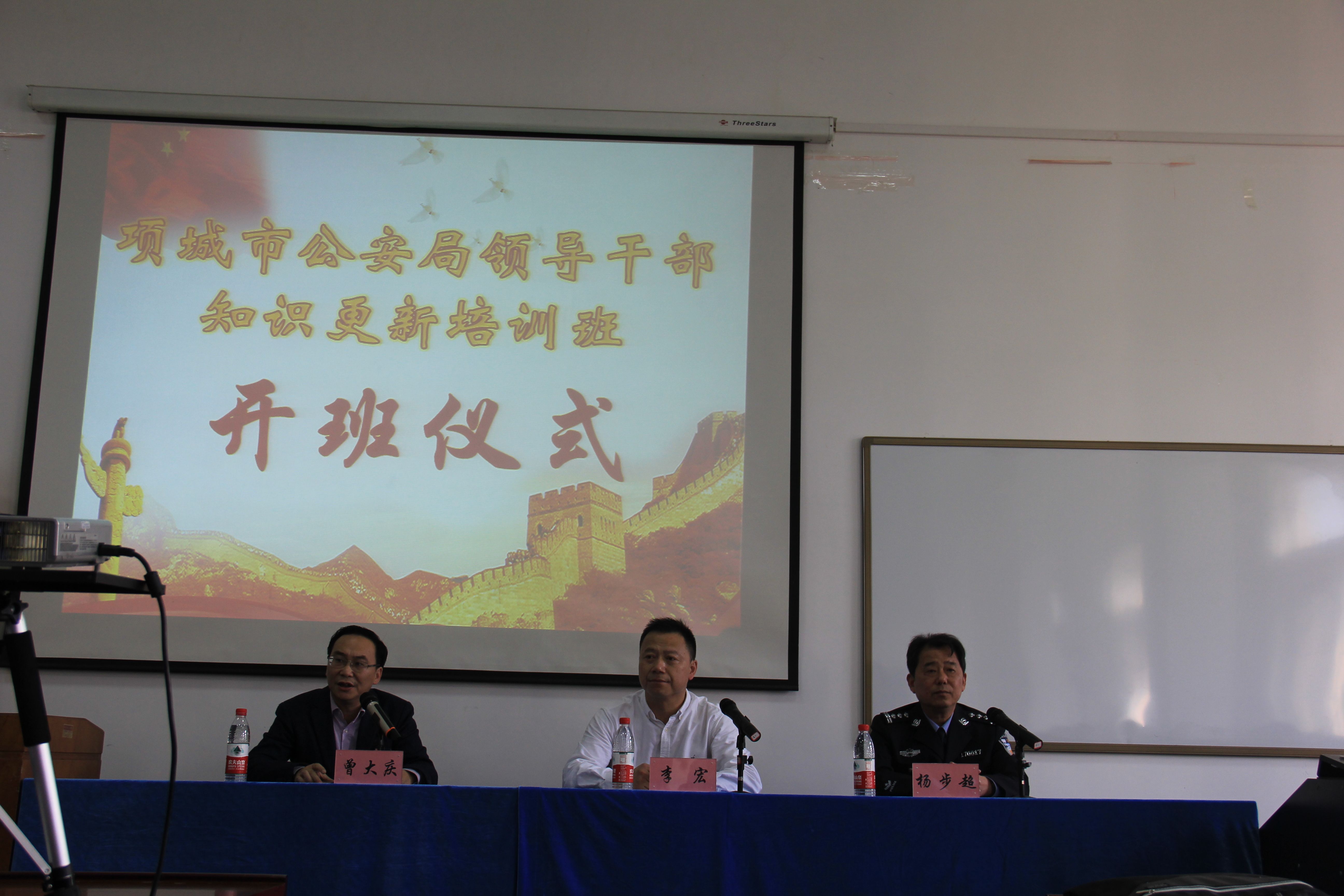 201842日上午,河南省项城市公安局领导干部知识更新培训班在文411室举行开班仪式。nba在线看 党委书记李宏同志,项城市公安局党委书记、局长杨步超同志及项城市公安系统50余名领导干部出席了开班仪式。仪式由nba在线看 培训中心主任曾大庆老师主持。