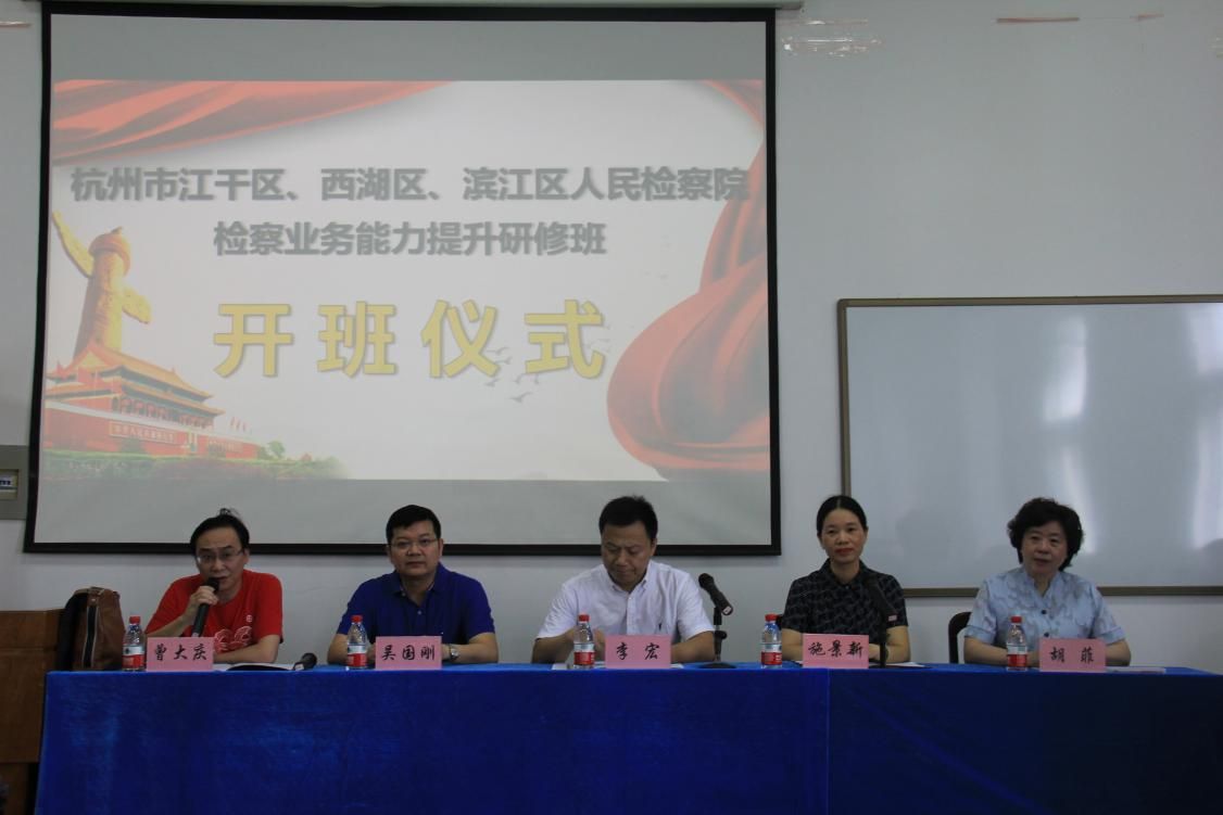 党委书记李宏同志,杭州市江干区人民检察院党组成员,检察长江波均同志及杭州市江干区、西湖区、滨江区三院70余名检察官们出席了本次开班仪式。杭州市检察系统业务能力提升研修班分为两期,共一百五十六名学员参加。本次研修班为第一期,开班仪式由nba在线看