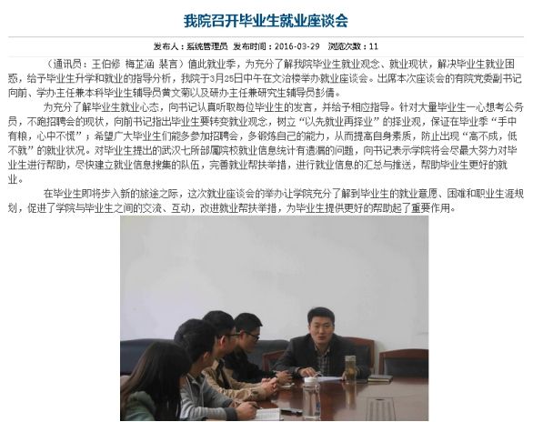表示将建立就业信息搜集的队伍,完善就业帮扶举措,进行就业信息的汇总与推送,帮助毕业生更好的就业。