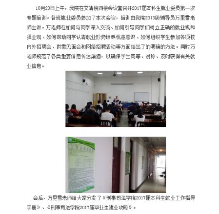本科生就业工作指导手册,并给每个宿舍制作了一张“求职攻略”宣传海报;