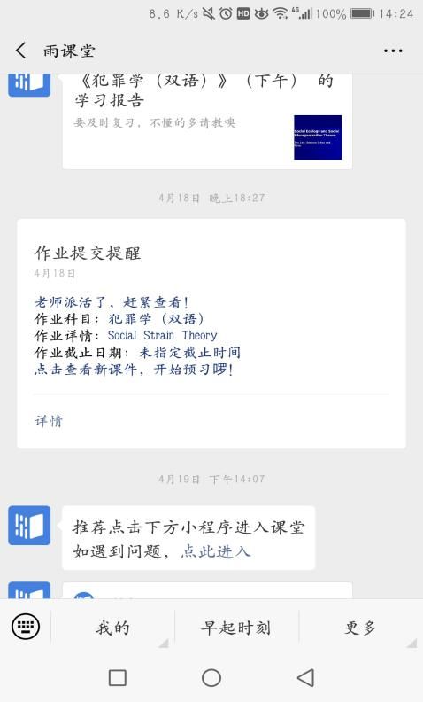 周凌老师的雨课堂教学不仅有常规授课、知识问答互动,还有课堂小组展示。不过雨课堂的课堂展示不仅仅是学生上台展示PPT而已,而是这么一个流程:各个小组将作业以图片方式上传雨课堂平台(雨课堂可以直接上传照片),并在教室电子屏上展示,每组派一个代表发言。例如某一次作业是:观看电影《crash》并利用犯罪学不同理论分析电影人物,同学们上课积极发言,课堂气氛十分活跃。周老师《犯罪学》的结课方式也具有新颖性,学生以小组为单位,以研创立项申请书为模板,选定一定的实证研究方法,就一定的论题拟订调查研究计划书,进行课堂展示,最终形成完整文章。