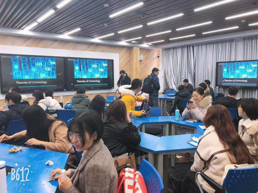 周凌老师为2018级刑法学研究生开设的犯罪学(双语)终于在文澴楼607智慧教室落下帷幕。在该课开课之前,周凌老师“智慧教学之星 移动教学男神”的称号就流传在学生之间,再加上我校专门为雨课堂量身打造的智慧教室,更是吸引了大量的学生慕名来听课,尽管该课将选课人数限定为32人,但在可容纳下47人的文澴607仍旧座无虚席。