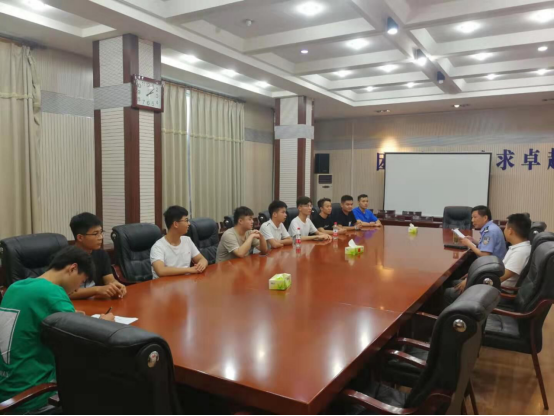 一抵达实习地点,我们实习小队一行受到了安陆市公安局民警的热烈欢迎和招待。随即胡鹏主任在办公室与实习同学们进行了简短的谈话,向我们简要介绍了安陆市的历史概况、人文风貌等基本情况;传达了市公安局领导对实习生到来的热烈欢迎;强调了实习的纪律,如上班期间不允许穿着花里胡哨、不允许私自下水游泳、不允许擅自离开实习单位等规定;在此基础上,市局领导表达了对我们一行实习生的殷切期望,希望我们认真学习,大力实践,将理论与实践相结合,度过一段难忘的实习时光。在办理好必要的手续之后,由各派出所的民警将同学们带到已经分配好的实习地点。