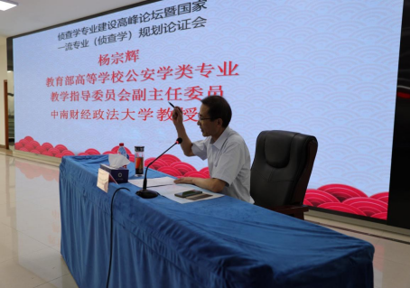 杨宗辉教授主持侦查学专业建设高峰论坛。各位专家学者围绕《新文科背景下公安学学科发展及国家一流专业建设标准》各抒己见,重点对公安学科与专业的关系;公安与技术的关系;国家一流学科建设标准;侦查学专业建设的关键要素;侦查学专业特色的凝练;新时代侦查学科人才培养、学术创新、服务社会、教学质量提升等内容进行了探讨。杨宗辉教授做总结时强调了四个方面的内容,一是公安学科的定位问题,二是大学教育与精英教育的关系问题,三是国家一流专业建设的标准问题,四是国家一流专业建设的具体思路与举措。