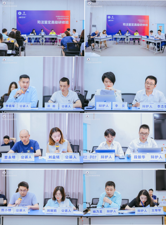 7月11日下午,司法鉴定高级研修班学员正式进入“理论讲解+法条解析+研讨互动+模拟演练”研修模式的最终环节,即混合模拟审判。舒玲华老师、娄秋琴律师、李少波老师担任评委,各研修小组派出组员分饰公诉人和辩护人,以人体损伤司法鉴定意见的质证为案例,共进行3轮对抗式混合模拟审判。活动过程中,学员们灵活应用研修班所学的司法鉴定专业知识,以司法鉴定质证方法论及实务经验分享为思考路径,结合案件线索快速、准确地探索事实真相,从形式和实质等多维度提出质证意见。在诉辩双方的唇枪舌战之中,学员们的研修成果得到进一步的检验。
