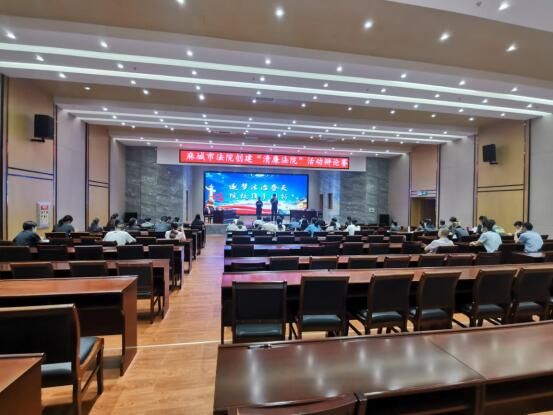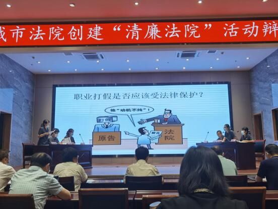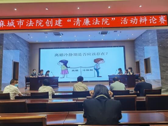 新闻网讯(记者石玥)2021年8月10日上午九时许,麻城市人民法院创建“清廉法院”活动辩论赛正式开始。此次辩论赛分为三场,每场辩题不同,法院同事组成的队伍和同学们组成的队伍分别作为正反方展开辩论。