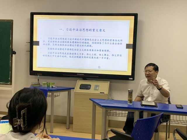 课程伊始,董邦俊副院长介绍了习近平法治思想的发展历程。从十八届四中全会到中央全面依法治国会议,董邦俊副院长系统全面地梳理了习近平法治思想形成历程的8个重要阶段。在讲授理论知识的同时,他和同学们分享了自己的学术经验,并推荐同学们日常学习《习近平法治思想三十讲》。