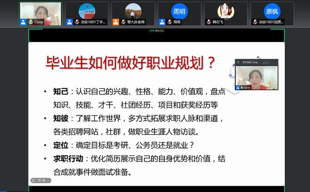 具体开展的班级导师活动周系列活动之一,不仅让即将毕业的学生们熟知了就业方面的相关信息以及相关步骤,还为他们树立了正确的人生规划观念,为他们拨开迷雾、答疑解惑、摆正思想,协助同学们奔赴更好的未来。