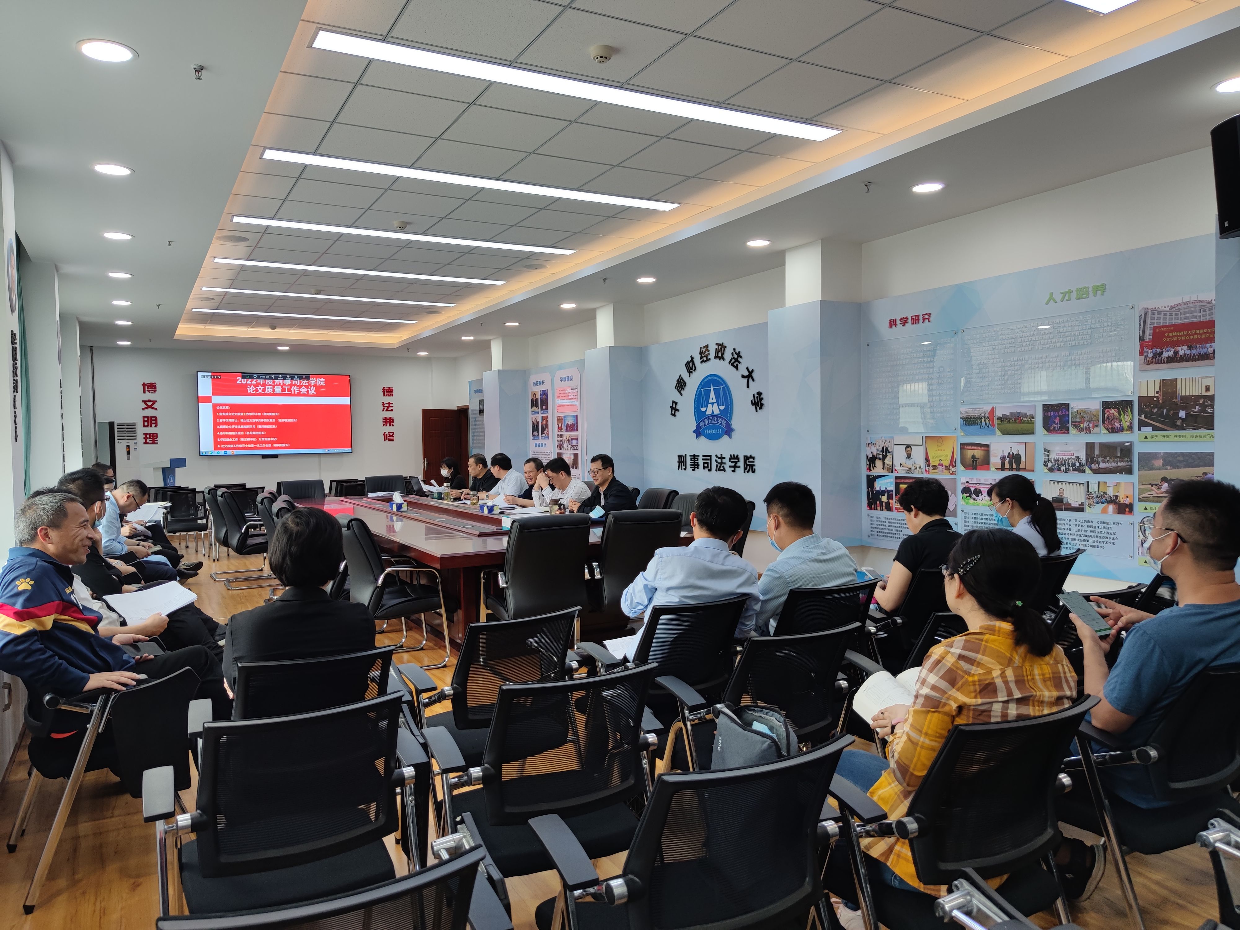会议最后,由胡向阳院长主持论文质量工作领导小组第一次会议,各位参会导师就如何把关学生论文质量进行了充分交流,并对学生论文修改、完善给出了具体意见。