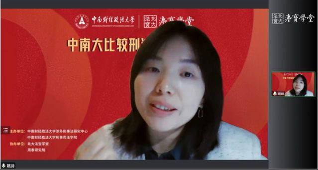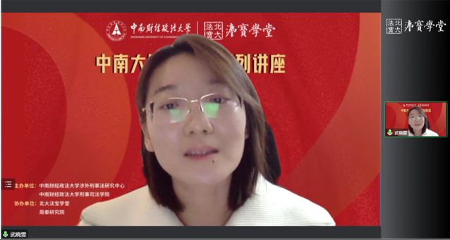 第三位与谈人武晓雯博士首先感谢了主办方的邀请和间接培养,并高度肯定了张老师的精彩讲述,表示今天的讲座让人受益匪浅。随后武晓雯博士从两个方面展开与谈,首先她对张老师的观点和逻辑结构进行了总结和重述,认为“等价性要件是一种思维方式”这一结论是大胆而成功的,表示张老师的问题提出能力和文献梳理能力值得大家学习;其次武晓雯博士谈及自己关于等价性要件的认识,她认为等价性要件是一种指导思想,其抓手是一种类型性支配,当行为人具有保证人身份,再加上具有作为可能性和结果回避可能性时,就可以成立不作为犯罪,至于是成立不作为共犯还是不作为正犯,则要根据犯罪人在具体案件中发挥的作用大小来决定。最后,武晓雯博士还就纯粹的结果犯和举止关联犯的概念向张老师提出了自己的疑问。