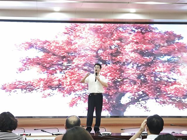 郭泽强教授作为开场选手,为中南大师生献上当代诗人舒婷诗作《致橡树》。他通过《致橡树》热情而坦诚地歌唱自己的人格理想,诗句与伴奏的精心安排,轻重缓急、抑扬顿挫的语调与朗诵内容相结合,使他的抒情充满感染力与鼓舞性,郭泽强教授将丰富细腻的感情带给现场每一位观众,经过激烈的角逐,荣获教师组一等奖。