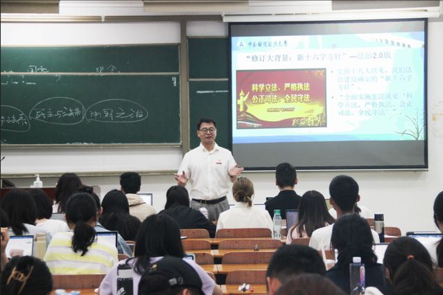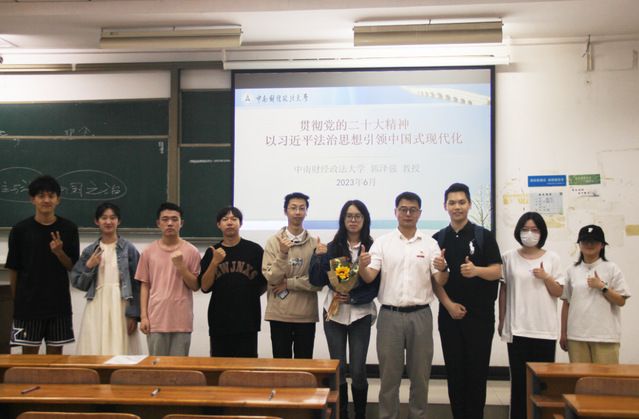 于6月5日下午2点在文泰楼101教室开展了以《贯彻党的二十大精神,以习近平法治思想引领中国式现代化》为题的“同上一门思政课”活动。