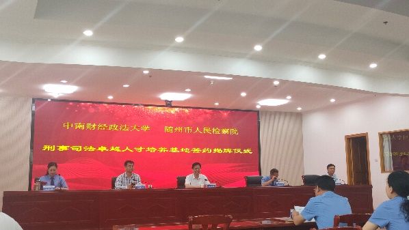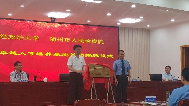实习师生受到了随州市人民检察院的热情欢迎和款待。上午十点半,在大会堂隆重举行了随州市人民检察院与中南财经政法大学刑事司法卓越人才培养基地签约揭牌仪式。