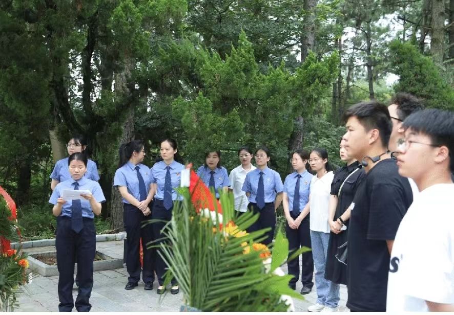 实习生在梅检领导的带领下参加主题为“传承红色基因 筑牢廉洁意识 锻造铁肩担当”的廉政宣传教育活动。在庄严肃穆的宛希俨、宛希先烈士陵园内,革命烈士纪念碑巍然耸立,nba在线看