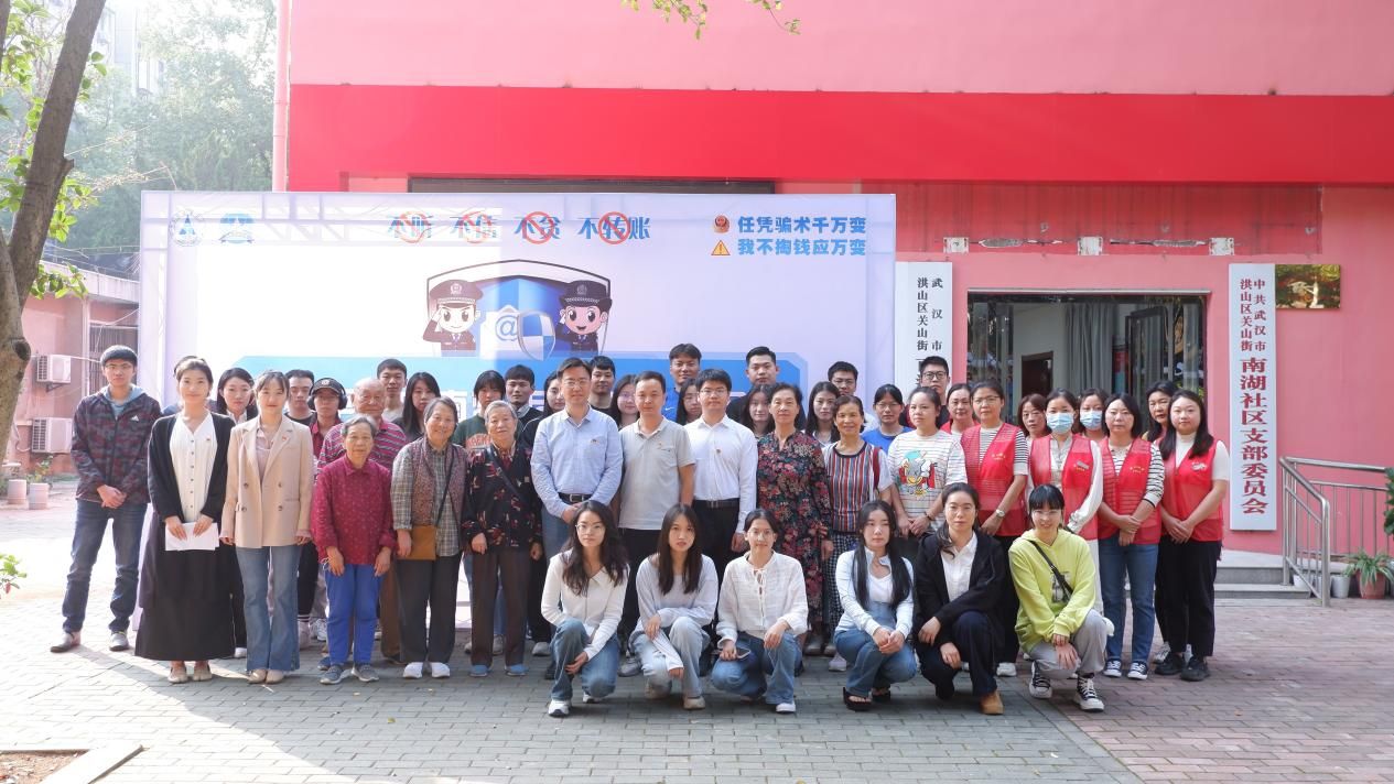 新闻网讯(学生通讯员 葛庆瑜 摄影 龙思敏)为进一步贯彻落实党的二十大精神,提高师生、居民的安全防范意识,共同营造全民防诈、全社会反诈的浓厚氛围,10月30日下午,“幸福平安中南梦,反诈防骗全民行”反诈文化宣传活动在武汉市洪山区关山街道南湖社区顺利举行。活动由nba在线看