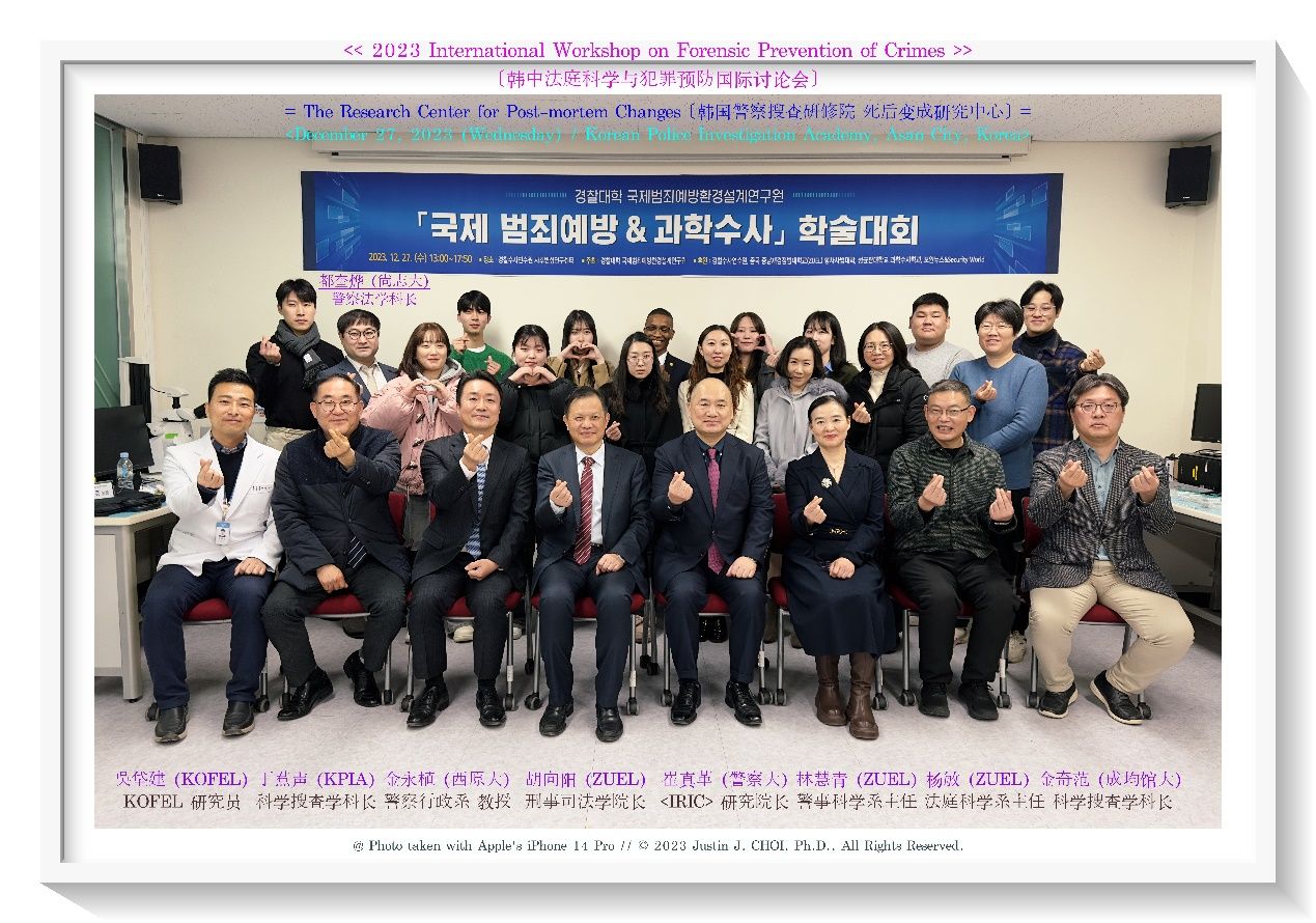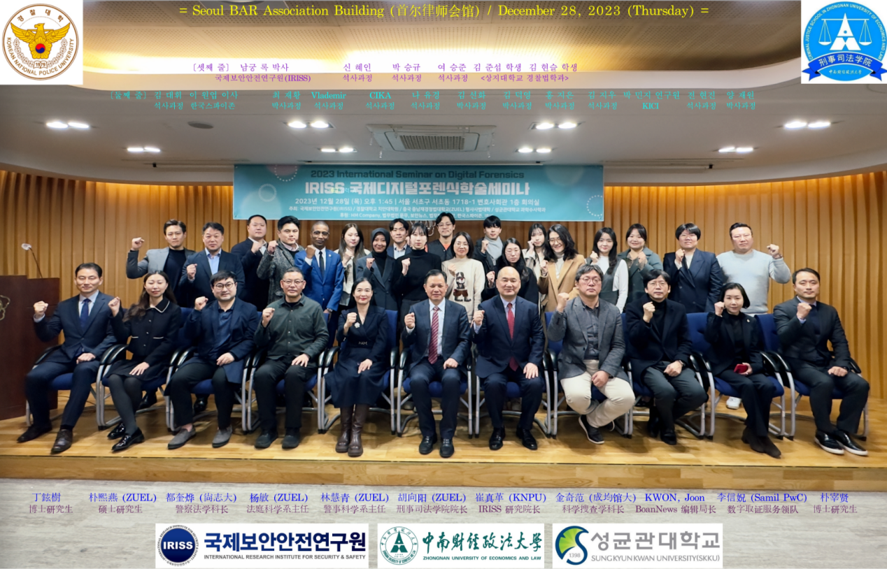 2023年12月27-28日,nba在线看 院长胡向阳教授、杨敏教授、林慧青副教授和硕士研究生朴熙燕一行四人受韩国国立警察大学邀请,参加由韩国警察搜查研修院、国际环境设计预防犯罪研究院、国际保安安全研究院和韩国国立警察大学联合举办的2023年韩中法庭科学与犯罪预防国际讨论会暨数字取证调查国际学术会议。