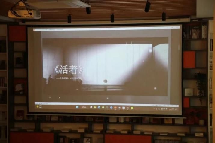 随后,张凡稷播放了2012年孟京辉导演执导的话剧《活着》选段,演员们在舞台上动情的演出让书中的人物更加鲜活,主人公福贵家财散尽、亲人离世等情节在大荧幕上以另一种形式展现,给予在场同学别样的精神震撼。