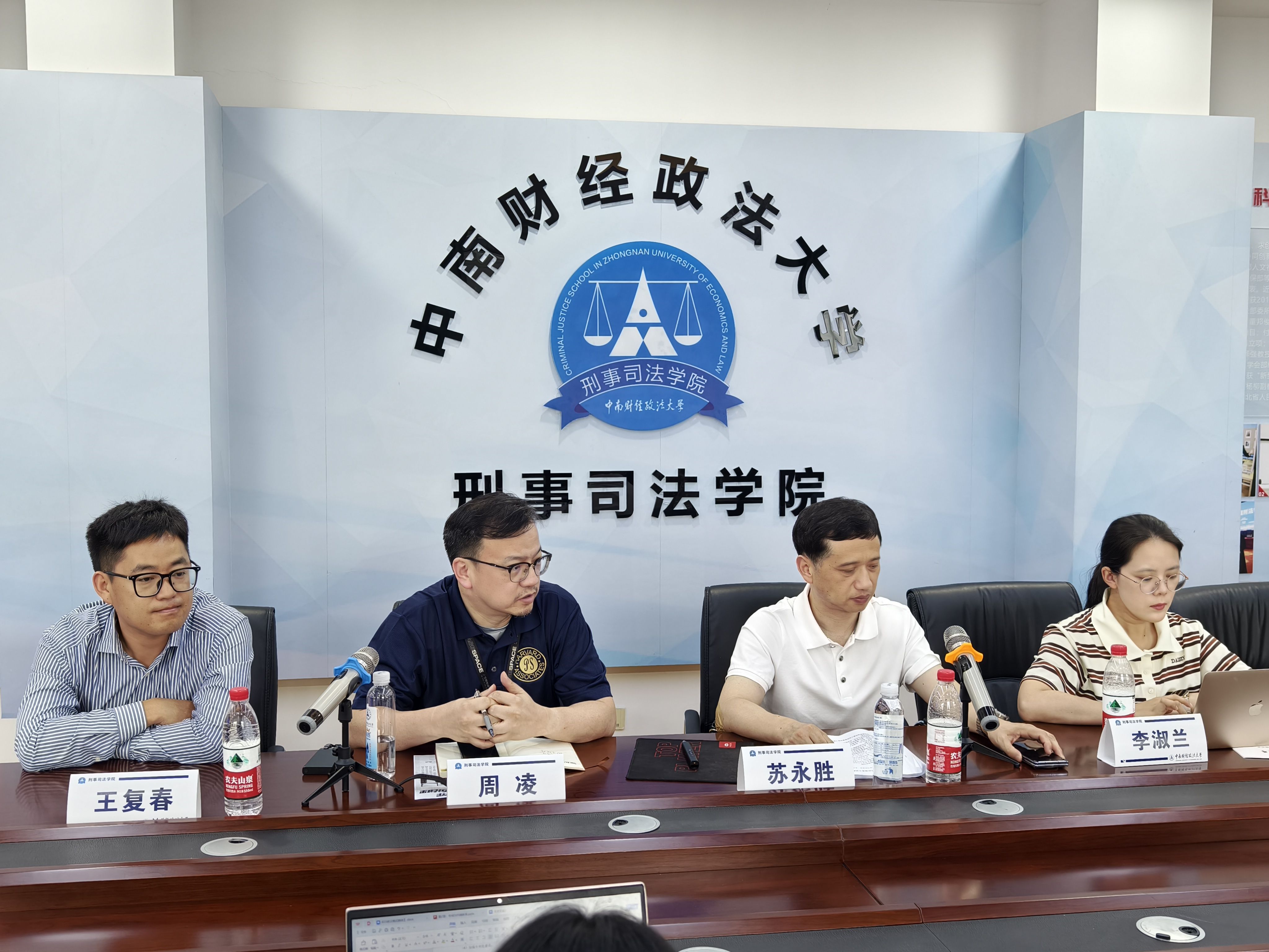 在文治楼二楼会议室共同举办了学术讨论会。本次讲座邀请了湖北省人民检察院第九检察部副主任、三级高级检察官、湖北省检察业务专家苏永胜检察官作为主讲人。本次讲座由中南财经政法大学周凌副院长主持,王复春副教授、李淑兰老师进行与谈。参与活动的同学针对相关话题进行了交流与探讨。