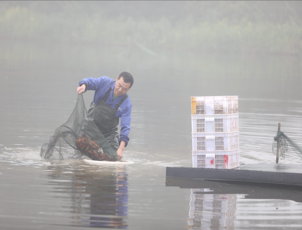 在养殖基地的示范区内,成员们亲眼见证了小龙虾捕捞的全过程,那一只只活泼乱跳的小龙虾,仿佛是大自然赋予潜江的宝贵财富。大家纷纷拿起手机,记录下这难得一见的场景,同时也将这份对农业创新的敬佩之情深深刻在心中。
