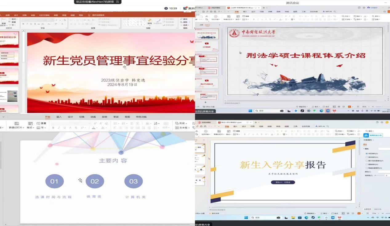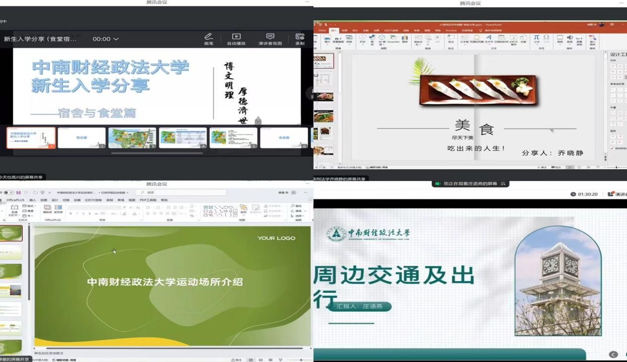 研究生会以及班委和支委的各项职务;韩竞逸同学从组织关系转接、档案审查和材料补办等角度,为党员管理事宜提供详尽指导;江佳霖同学以刑法学为视角深入解析硕士课程体系;毛诺言同学则为大家展示中南财经政法大学丰富的特色课程。