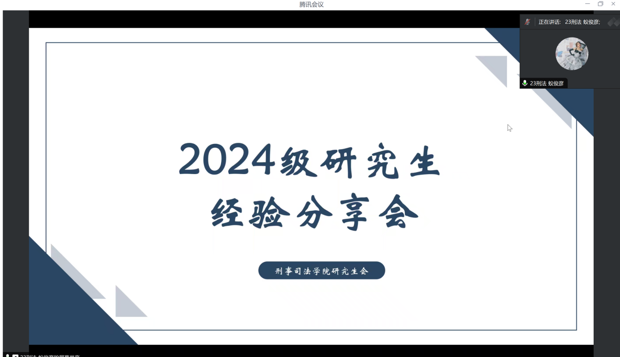 紧接着,在学习与实习经验分享环节,王烁宏同学针对刑法学论文选题与写作进行细致说明并指出注意事项;徐锦妍同学为大家指明图书馆、教学楼和咖啡厅等校内外自习地点;王津同学强调实习的重要性,并结合个人经历提供了宝贵经验;冯思琪同学则就研究生期间各类学习软件的使用分享了心得体会。