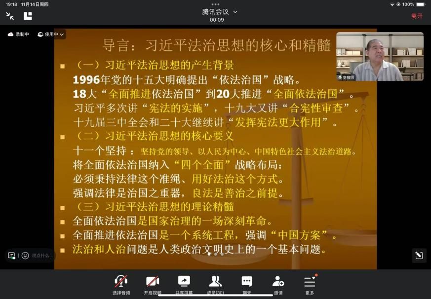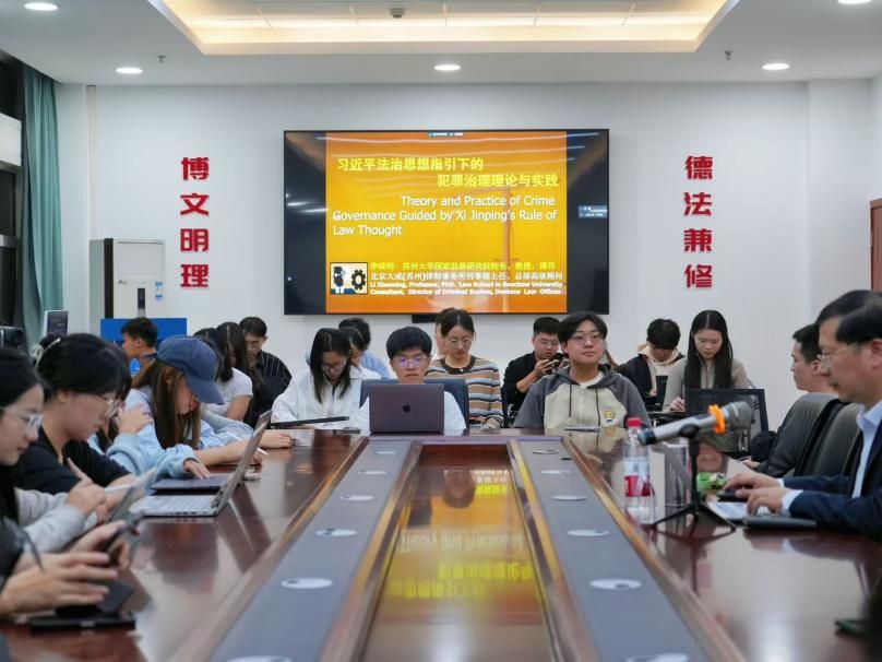 新闻网讯(学生通讯员 欧阳欣诺 摄影 孙惟安)11月14日19时,“习近平法治思想指引下的犯罪治理问题研究”主题学术讲座在中南财经政法大学南湖校区文治楼二楼会议室成功举办。本次讲座采取线上与线下相结合的方式,特邀苏州大学王健法nba在线看
