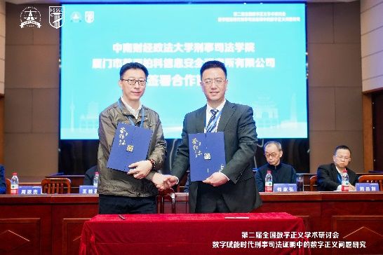 与厦门市美亚柏科信息安全研究所有限公司签署了合作协议。签约后,双方共同为“电子数据司法应用实验室”揭牌,实验室的成立将为数字技术在司法领域的应用提供更加坚实的技术支撑,也为未来的科研合作和学术交流提供了更新、更高的平台。开幕式圆满结束后,与会嘉宾进行合影留念。