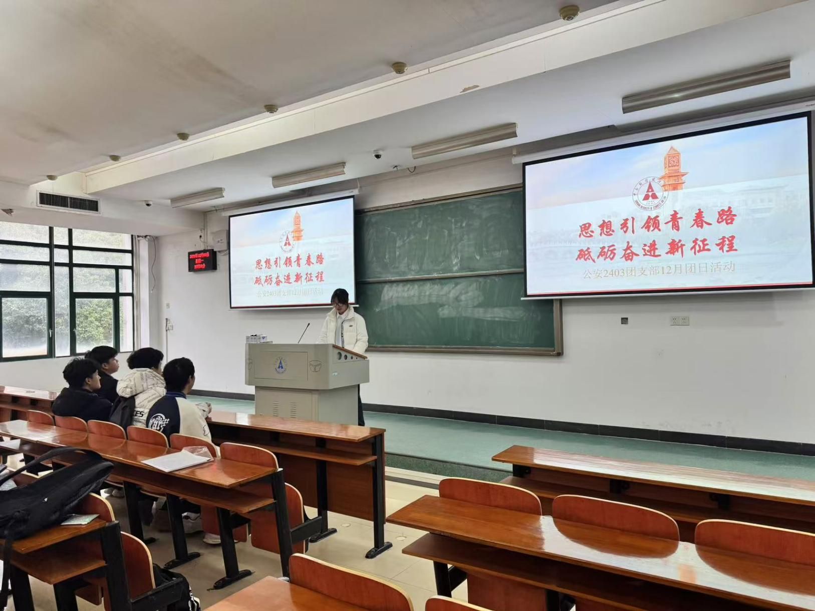 新闻网讯(学生通讯员 蒋承洋)12月9日,公安2403团支部开展了以“思想引领青春路,砥砺奋进新征程”为主题的团日活动。活动紧扣时代脉搏,增强团员青年的生态环境保护意识和历史责任感,深化大家对社会主义核心价值观的理解。