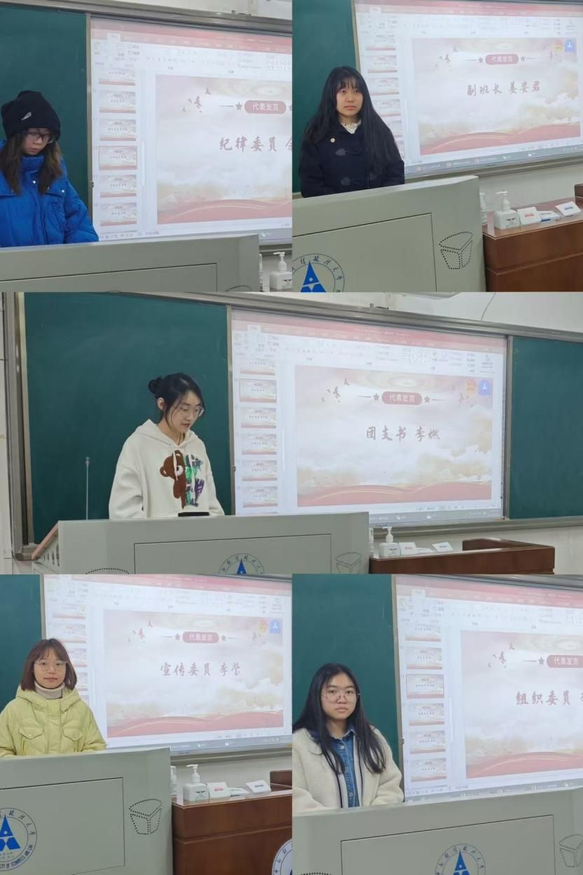 第二部分,由团员代表进行发言。团支书黄希哲、团支书李燃、组织委员李羽姗、纪律委员余越、宣传委员李莹、班长吕长骏、副班长姜姿君依次发言,结合自身学习、工作和生活情况,讲收获提高、讲差距不足,逐一开展批评和自我批评。