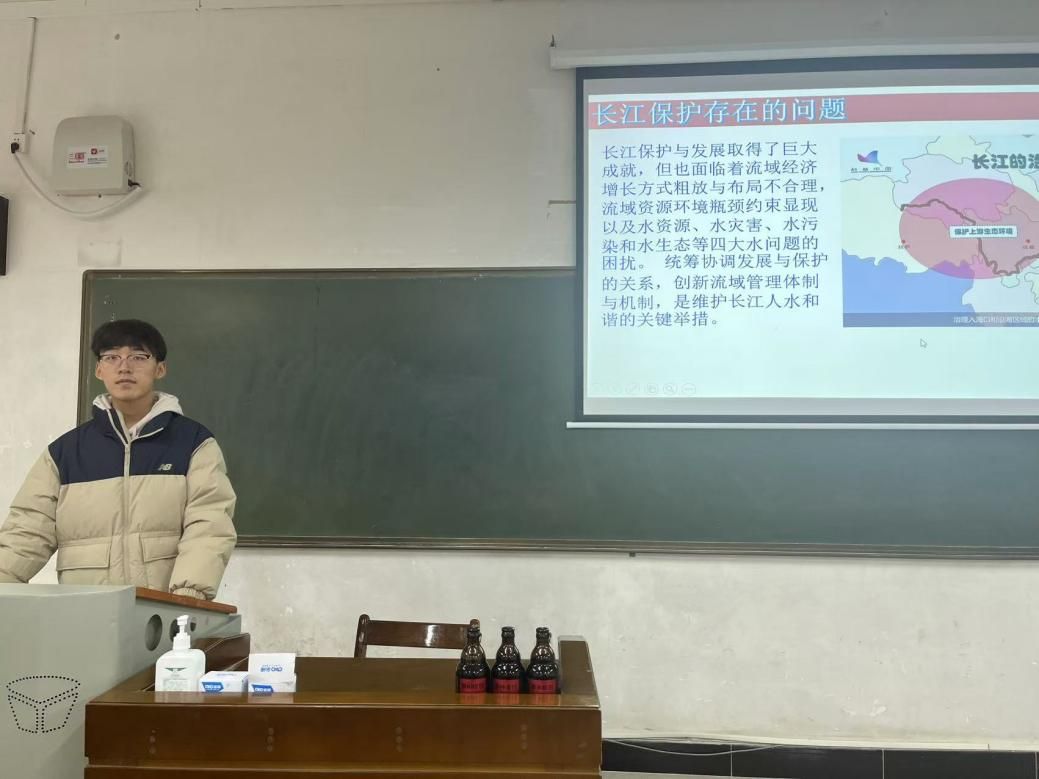 紧接着,团支书围绕“长江对中华民族的意义”这一主题展开了生动讲述。他讲到,长江是中华文化、悠久历史与蓬勃经济的鲜活象征,激发了大家对保护长江、传承中华优秀传统文化的强烈责任感与使命感。