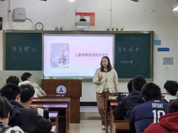 辅导员陆老师聚焦班级建设,强调班委换届以及班级建设相关事项。然后通过详实的数据分析班级学业现状,针对挂科、两极分化等问题,提出具体的建议。最后陆老师聚焦校园安全与班级建设,发布“平安校园三项行动”:组织宿舍安全自查周、建立防诈骗宣传网格员制度、开展心理健康主题月活动。