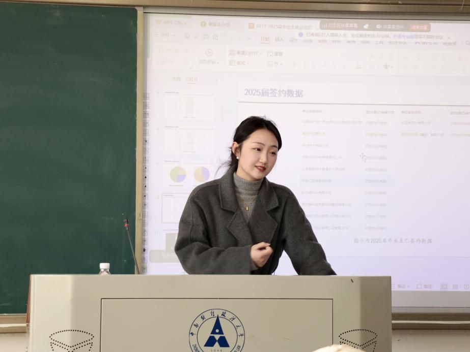 研究生办公室主任王晓丹主讲,围绕就业形势、求职技能、网签流程等问题展开系统指导,全体2025届研究生毕业生以线上线下结合的方式参会。
