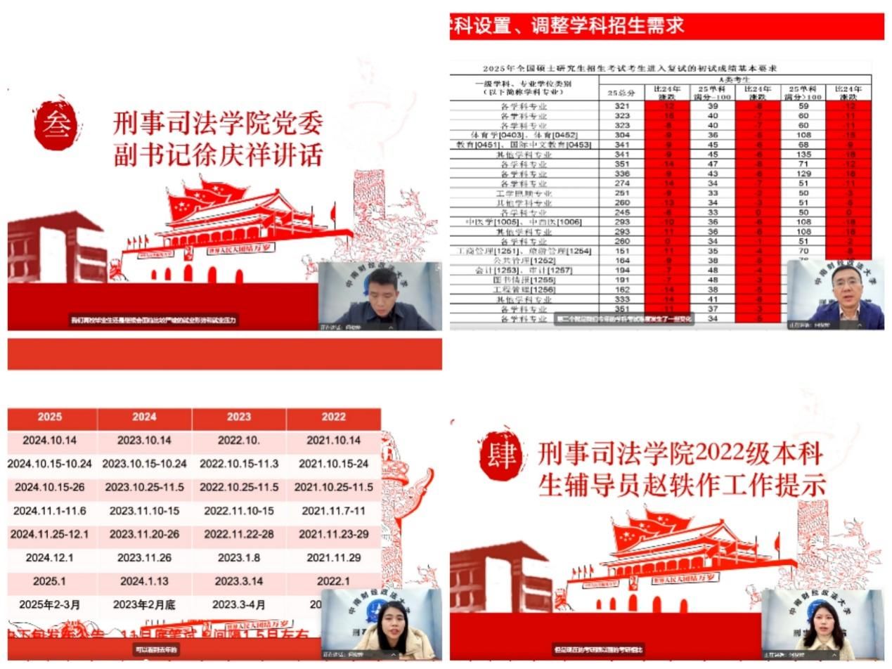 会议伊始,万学教育•海文考研教学与研究中心谭晓禹老师就考研形势开展讲解。谭晓禹老师从考研最新宏观形势、本院2024届录取学校、影响考研成功四要素三方面进行了详细的讲解。谭晓禹老师对往年招录比、考核方式、调剂规则等方面进行了详细的分析,并提醒同学们树立理性的“升学观”,考研是可选项,并不是必选项。