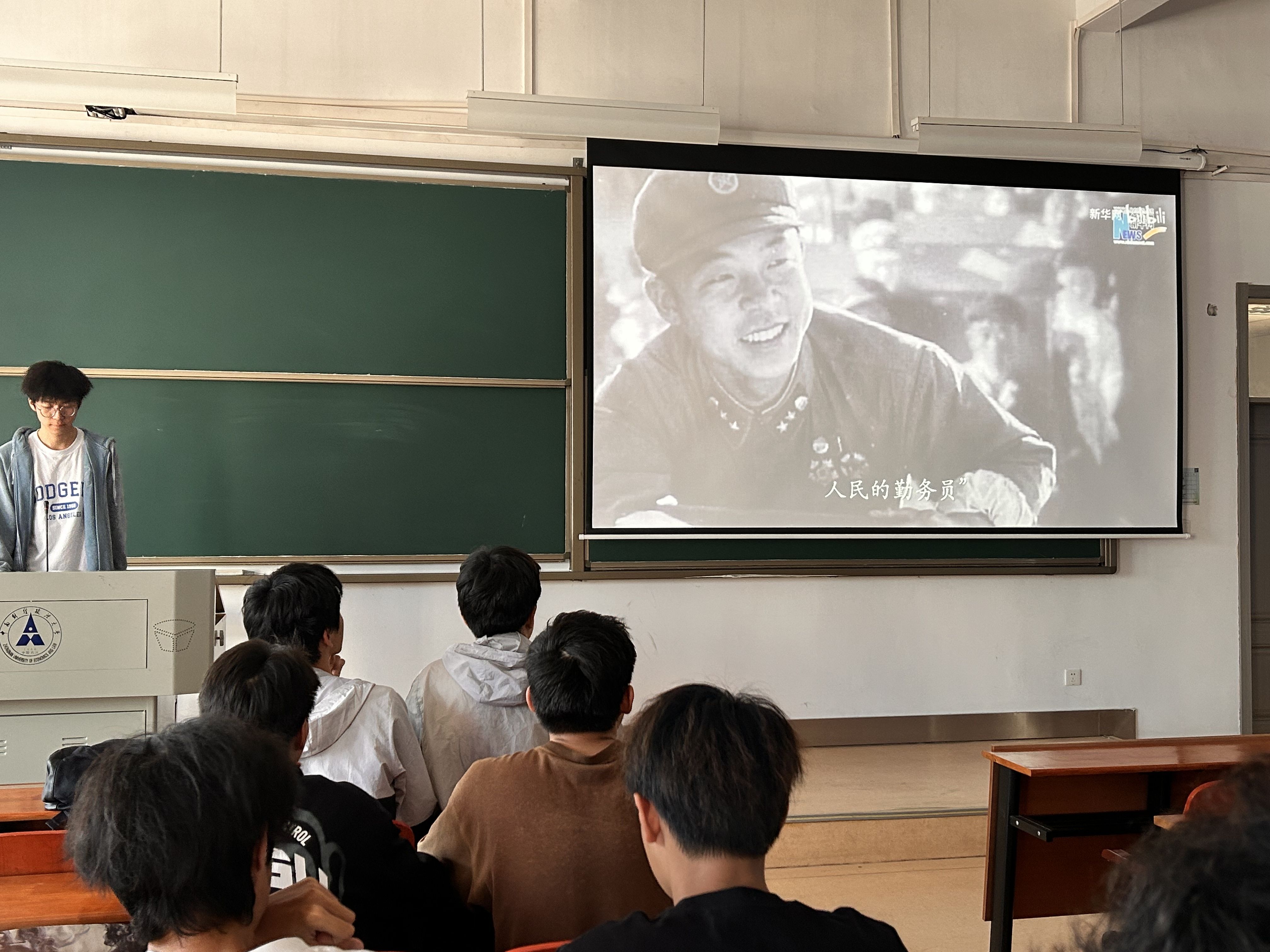 活动第二项,团支书给同学们播放讲述雷锋生平事迹的视频,带领大家了解雷锋的一生。视频中,雷锋同志的无私奉献使不少同学纷纷动容。