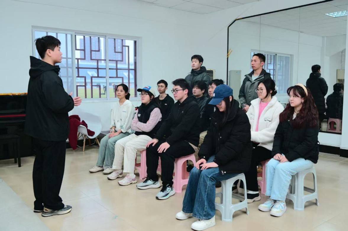 剑花教学则注重基础技巧与艺术美感的结合,从握剑姿势到手腕发力,校清音京剧团成员进行示范并逐一指导同学们练习,让同学们在旋转的剑花中感受太极剑的力与柔。