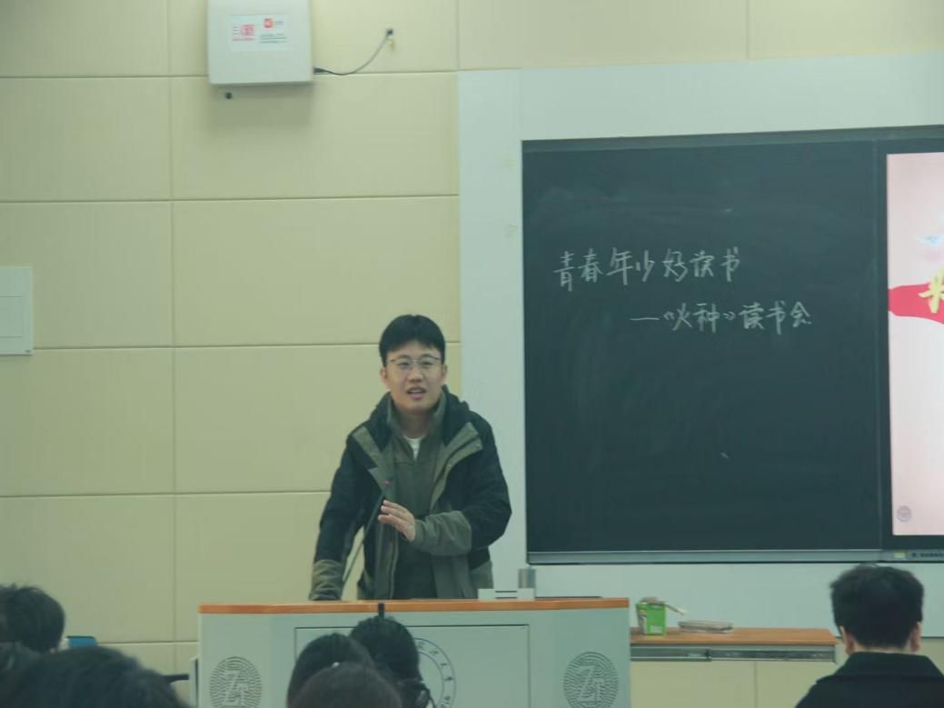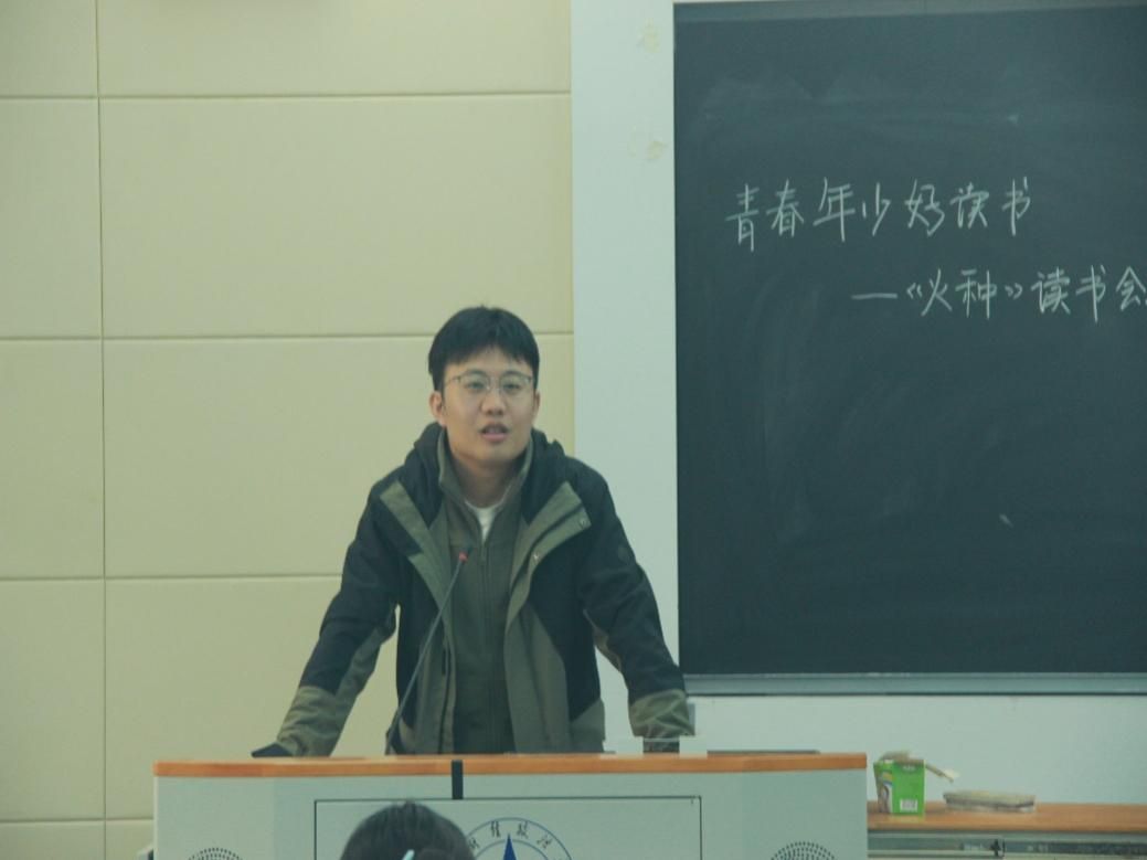 活动第二项,由青年培育办公室的成锦豪同学带领大家学习《火种——寻找中国复兴之路》一书的主要内容。成锦豪同学指出,本书作者选择从1901年切入,这样的时间线选择是具有深意的,这是为了揭示“中国共产党的诞生不是偶然,而是近代中国救亡图存的必然结果”。