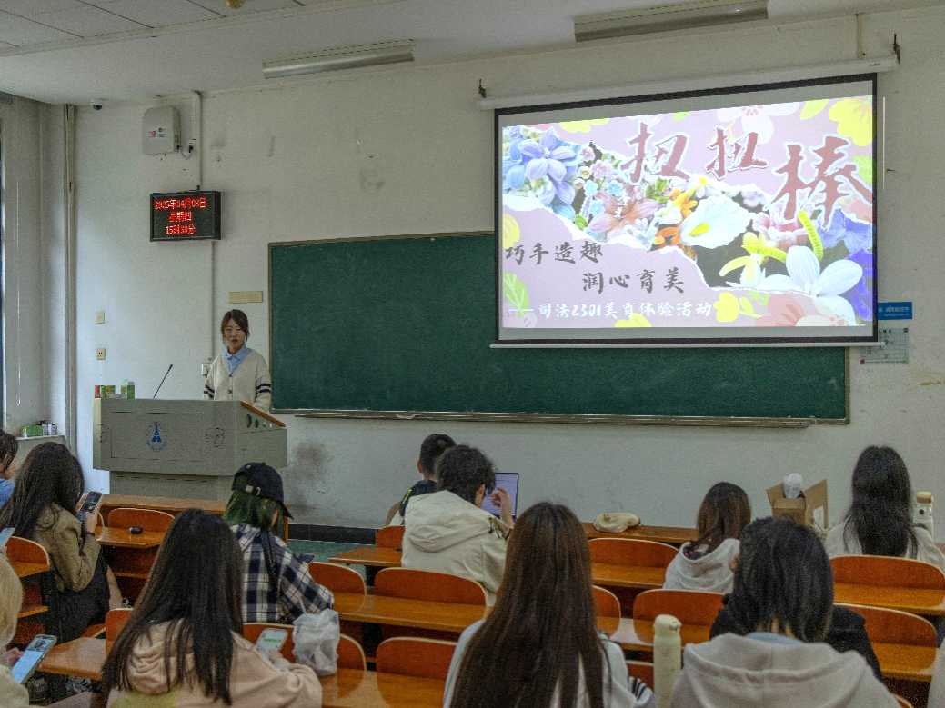 新闻网讯(学生通讯员 陈亚萍 吴钊)为深入贯彻“五育并举”的教育理念,以劳育滋润心灵,激发同学们的创造力,增强班级凝聚力,4月3日,司法2301班团支部在文波209开展了以“手巧造趣,润心劳育”为主题的扭扭棒手工体验活动。本次活动由团支书陈亚萍主持召开,通过小组合作、成果展示、作品交换三个环节,带领同学们感受动手之趣。