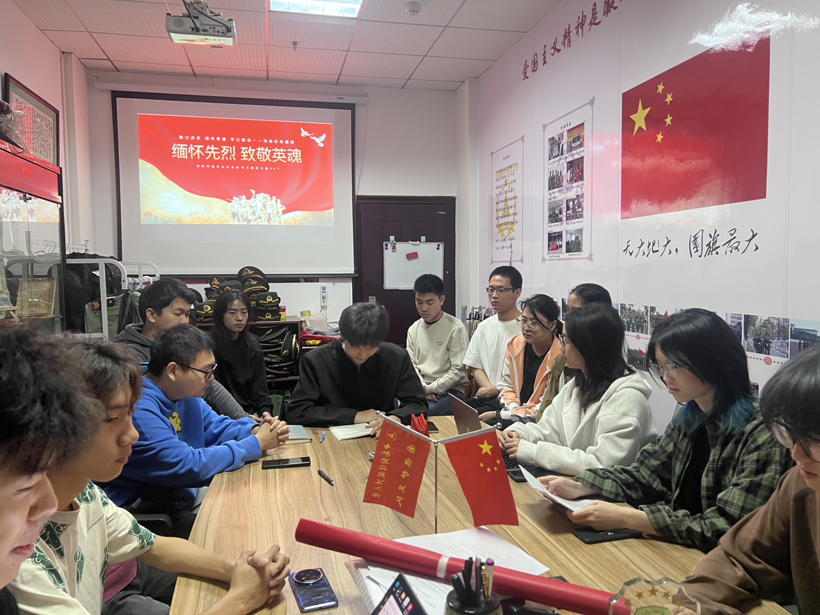 清明节是缅怀先烈、铭记历史的重要时刻。为深刻学习革命英烈的伟大精神,增强队员的家国情怀,中南财经政法大学国旗护卫队功能型团支部于2025年4月1日在文治楼一楼会议室召开“缅怀英烈,铭记革命精神”主题团日活动,全体队员参加会议,功能型团支部书记赵俊尧担任主讲人。