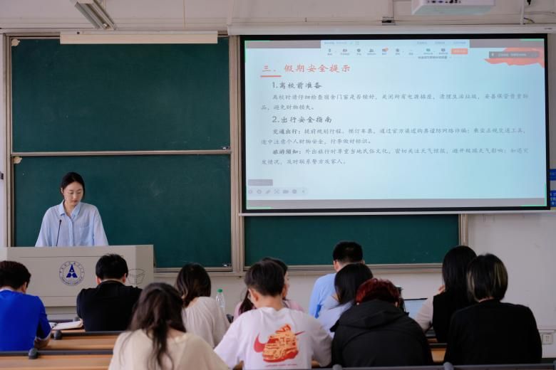 会议第四项,王晓丹就反诈宣传、校园安全及心理健康教育作专题讲解。王晓丹首先组织学习防范电信网络诈骗告知书,结合典型案例提醒同学们提高反诈意识。在校园安全方面,她特别强调消防、交通、食品等重点领域的安全注意事项,呼吁同学们提高校园安全意识,提升自我保护能力。针对研究生心理健康,她指出,同学们应正确认识心理健康水平,并为大家介绍心理健康“三助”体系,提供心理健康求助手段。会议最后,王晓丹提醒同学们五一期间注意安全,离校履行请假手续,留校加强自我防护,确保度过一个平安、愉快的假期。