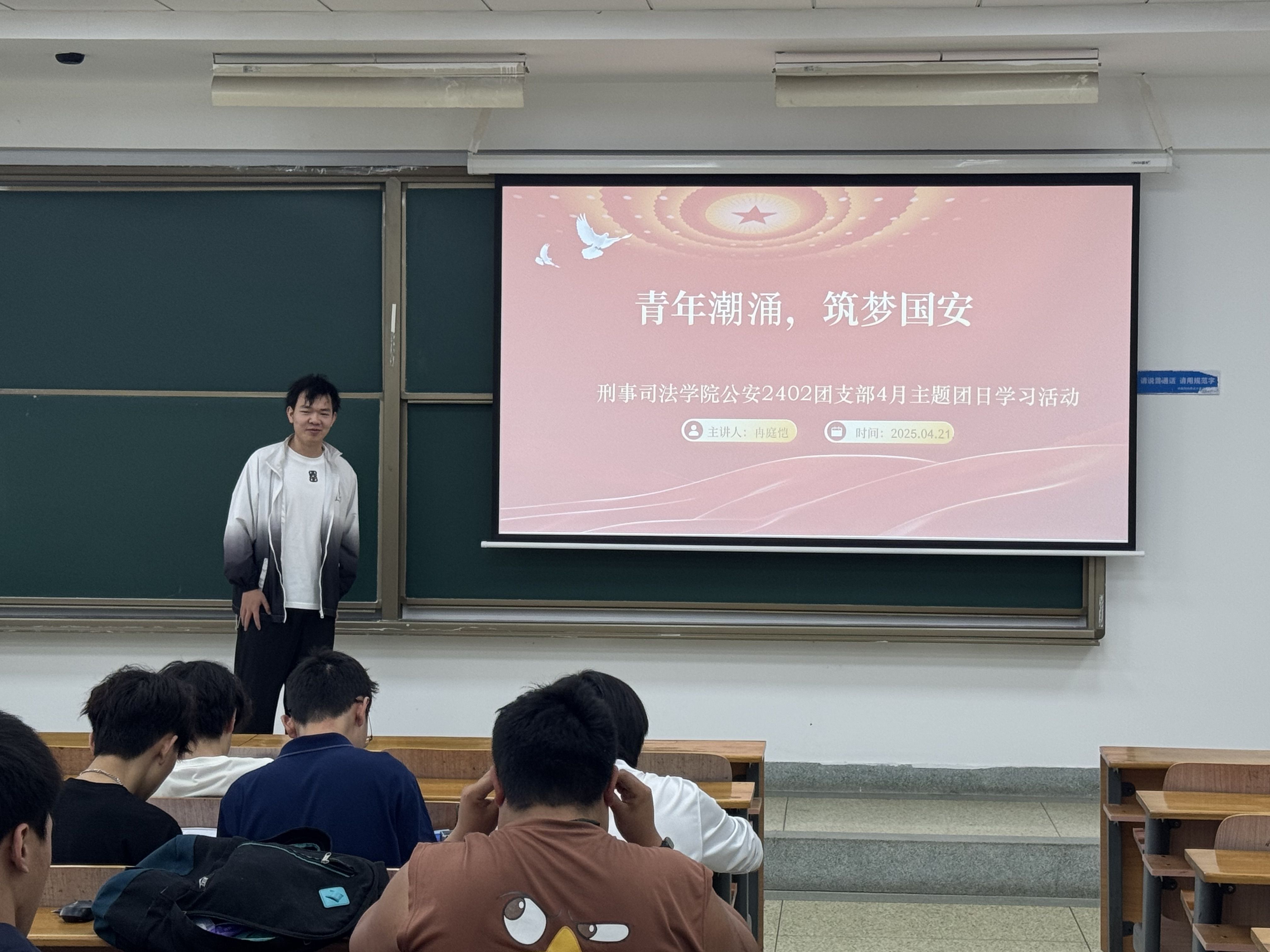 新闻网讯(学生通讯员 冉庭恺)4月21日,公安2402团支部在文泰403召开了 “青年潮涌,筑梦国安”4月国家安全主题团日活动。此次班会旨在强化同学们的国家安全意识,引导青年学子践行维护国家安全的使命担当。