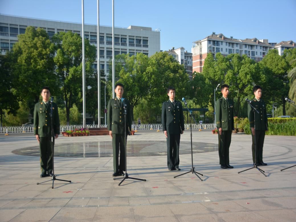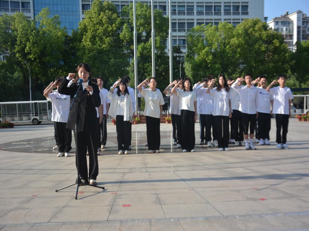 活动伊始,国旗护卫队以齐步行进方式从文治楼出发,最终到达中原楼前。随着《义勇军进行曲》奏响,全体师生肃立行注目礼,齐唱国歌。