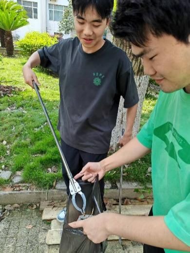 春末夏初的中南大校园草木葱茏,阳光和煦,武汉正午的烈日已有了些许灼热,但没有一位志愿者退缩。14时,志愿者们手持扫帚、垃圾夹、环保袋等工具,准时在文治楼前集合。活动负责人简要说明分工后,同学们分组前往保卫处前道路、中区花园及教学楼周边区域,有序开展清洁工作。没有在树荫下偷懒乘凉的,更没有迟到早退的,相反,志愿者们穿梭于绿荫步道与花坛间,仔细清理散落的纸屑、塑料袋,弯腰拾起草丛中的饮料瓶,甚至耐心抠出石缝里的烟蒂。针对春季风大导致的落叶堆积问题,大家分工协作,有的负责清扫路面,有的将落叶装入环保袋集中处理。