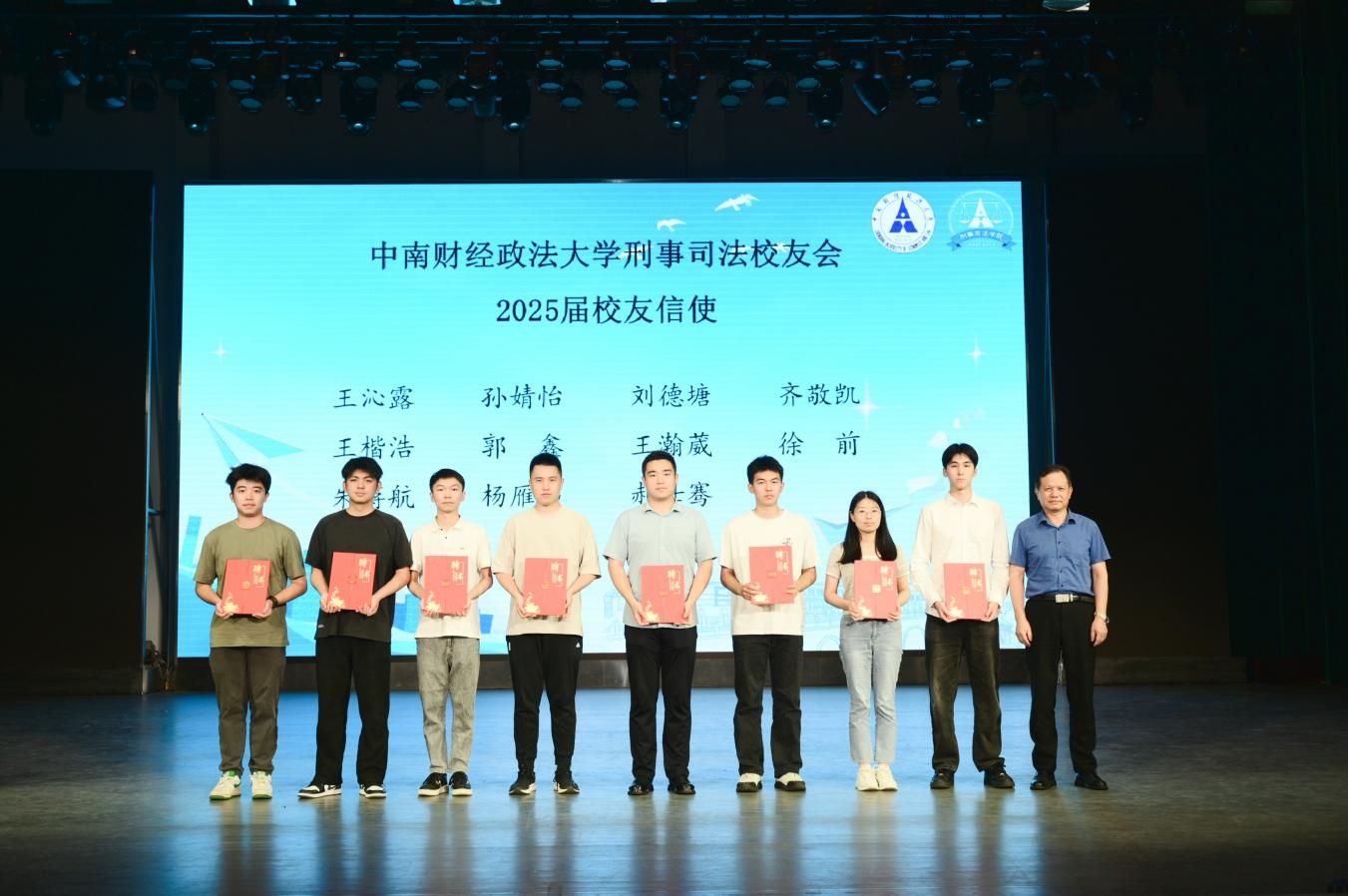 关怀,凝聚校友力量,共同书写刑司人的奋进篇章。刑事司法校友会会长胡向阳教授为校友信使颁发聘书。