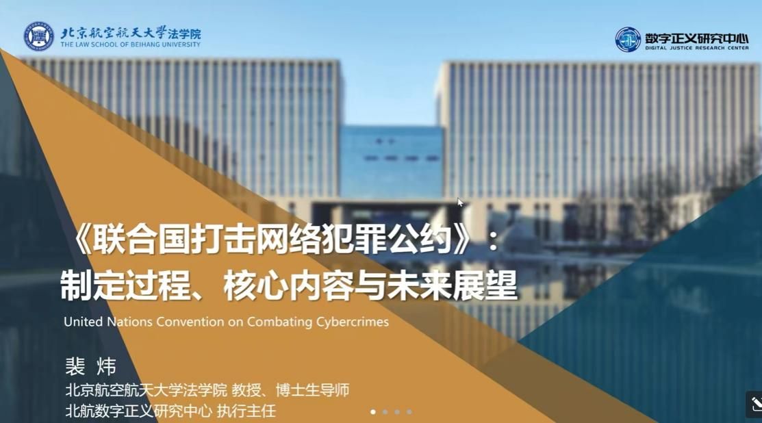 随后,裴炜教授系统讲解了《公约》的核心内容与主要争议。她对实体定罪、程序措施以及国际合作章节进行了详细阐释。在实体定罪方面,强调条文具有适应性和前瞻性,兼具保留空间和协调性,注重未成年人保护;在程序措施与执法方面,条文针对性强,注重取证手段的正当性与人身保障的动态平衡,兼顾国内诉讼程序与国际协作双重适用场景;在国际合作方面,兼顾网络犯罪和一般严重犯罪,强调实体与程序协作并重,强化网络服务提供者的角色和功能。裴炜教授进一步介绍了《公约》制定过程中在命名、定罪范围、程序措施与国际合作等方面的争议焦点,她指出《公约》在坚持尊重主权原则、彰显全球包容性等方面具有显著优势,但在定罪范围、预防机制等方面仍存在完善空间。